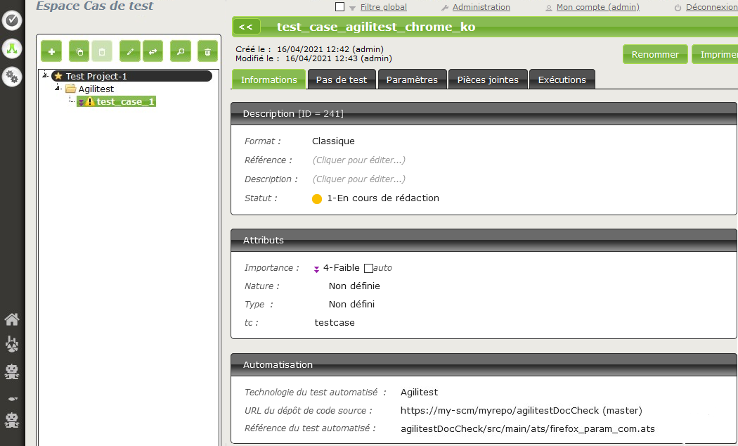 Ci-dessous un exemple d'un fichier de test Agilitest et l’automatisation du cas de test Squash TM associé :